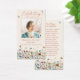 Il s'agit d'une carte de prière fantasque commémorative. Le design comprend une belle police calligraphie et de beaux fleurs sauvages en rose pastel, violet, bleu, jaunes et rouille ou en terre cuite et aussi des papillons délicats floutants. Cette carte de prière funéraire peut facilement être personnalisée avec votre propre photo pour créer un hommage spécial pour votre être cher en utilisant le modèle fourni. Veuillez contacter le concepteur pour toute question concernant ce design ou pour tout produit correspondant.