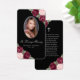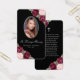 Elégante carte de mémoire florale noir et argent/carte de prière funéraire avec une photo ornée de roses roses rousses et de fleurs d'haleine de bébé sur un arrière - plan noir clair.