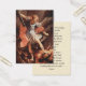La prière à saint Michel est au dos de cette carte qui représente Michael l'Archange vaincant Satan. La prière dit : "Saint Michel l'Archange, défendez-nous au combat. Soyez notre défense contre la méchanceté et les pièges du diable. Puisse Dieu le réprimander, nous prions humblement, et faites-vous, ô Prince des armées célestes, par la puissance de Dieu, enfoncé dans l'enfer Satan, et tous les esprits maléfiques, qui se promènent sur le monde à la recherche de la ruine des âmes. Amen."