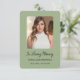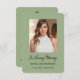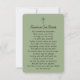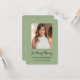 Cette simple carte funéraire peut être donnée comme souvenir lors d'une célébration de la vie ou d'un service funéraire ou envoyée comme hommage spécial à ceux qui n'ont pas pu y assister. Personnalisez cette carte avec une photo préférée de votre défunt, des détails et votre choix de prière ou de poème au dos de la carte. Design dispose d'élégante police de caractères blanc script sur un arrière - plan vert sauge apaisant qui peut être changé à n'importe quelle couleur de votre choix. Facile à customiser photo, texte et couleur arrière - plan.