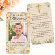 Nos pensées et nos prières sont avec vous pendant ce temps. Le chagrin est douloureux, nous ne pouvions qu'espérer que notre Carte de prière pour les funérailles florales personnalisée, avec de beaux accents de fleurs aquarelles le long de la frontière, puisse aider à apporter un peu de lumière dans ce triste moment. Cette carte de prière commémorative peut être donnée en souvenir lors d'un enterrement, d'une fête de la vie, d'une veillée ou d'un hommage spécial à ceux qui n'ont pas pu y assister. Personnalisez vos cartes de prières funéraires commémoratives avec une photo préférée. Vous pouvez choisir d'utiliser le poème que nous avons écrit qui est au verso de la carte, ou de vous ajouter votre poème préféré, la prière, ou le verset de la bible. Nous avons toute la collection commémorative dans notre boutique, jetez un oeil ici : https://www.zazzle.com/collections/remembering_those_we_love-119109468996146283?rf=238608481055206169 Merci tellement pour soutenir notre petite entreprise 🙏