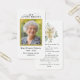 Un hommage élégant et réfléchi à un être cher. Leur photo est placée sur le devant de la carte de prière dans un cadre double or. Dans Loving Memory est placé ci-dessus. Leur nom et leur date de vie sont indiqués ci-dessous. Deux lignes de texte vous permettent de personnaliser votre hommage. Le dos est orné d'une croix d'or nichée dans des roses blanches. Vous pouvez placer la prière ou le poème favori de votre être aimé ci-dessous