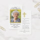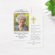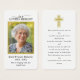 Un hommage élégant et réfléchi à un être cher. Leur photo est placée sur le devant de la carte de prière dans un cadre double or. Dans Loving Memory est placé ci-dessus. Leur nom et leur date de vie sont indiqués ci-dessous. Deux lignes de texte vous permettent de personnaliser votre hommage. Le dos est recouvert d'une croix d'or. Vous pouvez placer la prière ou le poème favori de votre être aimé ci-dessous