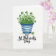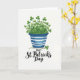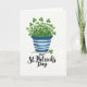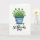 Cette carte de la Saint-Patrick présente un pot à aquarelle débordant de trèfles, leurs feuilles disposées en couches dans de nombreuses nuances de vert, de l'émeraude profond au vert lime brillant 💚. Les trèfles se déversent vers l'extérieur dans des lavis doux et transparents, comme s'ils se penchaient vers vous comme le font des amis proches pour une photo. Le pot est peint d'un bleu riche avec des rayures horizontales blanches nettes, donnant à la scène une touche confortable et balnéaire. Tout repose sur un fond blanc large, laissant beaucoup d'espace ouvert qui fait ressortir les verts et les bleus. Une seule tige de trèfle mince s'échappe sous le pot et se courbe vers le bas, comme une main douce tendue vers le message ☘️. Centrée sous l'illustration, la phrase « Joyeuse Saint-Patrick » apparaît en lettrage noir fluide, la courbe de la tige