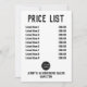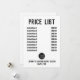 Tarifs pour toute entreprise comme un bar à ongles, salon de beauté, coiffeur ou salon de coiffure. Modifiez les prix comme vous le souhaitez. Affiche jusqu'à 9 articles et prix. Noir et blanc.