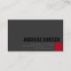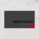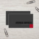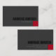 Carte de profil professionnelle personnalisée en gris foncé avec du texte de nom noir et du texte gris plus clair pour d'autres informations. Impression sur deux côtés, où la couleur arrière - plan est changeable. Dans le coin inférieur droit se trouve un carré rouge qui attire l'oeil et qui se répète aussi à l'arrière. Ci-dessous, d'autres variantes de ce design.