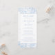 Elégante Chinoiserie bleue et des cartes de programme de mariage classique d'inspiration porcelaine présentant des fleurs délicates.
