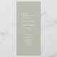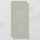 Cette carte de programme de mariage simple et magnifique présente un design typographique élégant, moderne et minimal avec un thème vert sage. Prêt pour vous à customiser avec les détails de votre cérémonie de mariage. Veuillez naviguer dans la suite de Mariage minimal Sage Green Elegant pour rechercher des articles de papeterie correspondants.
