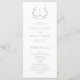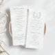 Programme de mariage en vert sauge avec monogramme botanique en couronne.