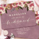 Célébrez votre histoire d'amour avec la beauté intemporelle de la collection mariage "Ophelia Floral" dans la couleur rose poussiéreuse, conçue pour évoquer romance et élégance. Cette suite mariage est ornée de fleurs d'aquarelle peintes à la main et d'un feuillage délicat, qui capturent la grâce et le charme d'un mariage d'inspiration jardin. Parfait pour ceux qui recherchent une touche raffinée mais naturelle pour leur journée spéciale. La palette de couleurs douce et sophistiquée comprend Smoky Pink, un rose mauve sourd et muet qui ajoute un ton doux et romantique ; Ophelia Rose, une délicate teinte blush qui rappelle les pétales frais ; Antique Pearl, un blanc cassé doux et crémeux qui donne une touche d'élégance vintage ; Forest Fern, un vert terreux subtil qui apporte une sensation naturelle et organique ; Dusty Orchid, une prune profonde et muette qui apporte profondeur et richesse au design général. Ces couleurs se conjuguent pour créer un look harmonieux et enchanteur, mêlant élégance florale, verdure subtile et tons luxueux et neutres. Chaque teinte ajoute profondeur et caractère, ce qui fait de votre suite mariage se démarquer par son charme intemporel. Découvrez la collection complète "Ophelia Floral", qui comprend des invitations de coordination, des remises de dates, des programmes de mariage, des décors, des faveurs et bien plus encore. Cette suite complète vous offre tout ce dont vous avez besoin pour porter le thème sur l'ensemble de votre mariage, assurant une expérience cohésive et élégante du début à la fin. Explorez la gamme complète pour créer l'atmosphère parfaite pour votre journée inoubliable. Visitez le guide de planification complet pour plus d'inspiration, des imprimés et des tonnes d'informations pour vous aider à planifier le mariage parfait - www.lulubelllane.com