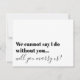 Demandez à votre célébrant de vous marier avec cette carte de proposition de célébrant à la typographie moderne qui dit : Nous ne pouvons pas dire oui sans vous... voulez-vous nous marier ?