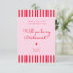 Carte de Proposition de Demoiselle d'Honneur à Rayures Rouges et Roses Rétro