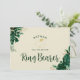 Feuillage Tropical Moderne, Bordure de Verdure et de Feuilles, Cartes de Proposition Personnalisées "Veux-Tu Être Mon Porte-Alliance". Parfait pour votre papeterie de mariage sur le thème tropical. Dans une palette de couleurs audacieuses de verts riches, émeraude et doré. Ce design est parfait pour un mariage sur la plage, de destination ou d'été. Avec des sentiments de paradis tropical, ce design de feuilles de palmier vives complétera votre lieu de mariage balnéaire ou tropical. Dans un schéma de couleurs vert foncé, sarcelle, émeraude, verdure et or - Cartes de Proposition "Veux-Tu Être Mon Porte-Alliance".