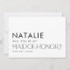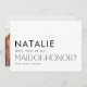 Prévoyez-vous le jour de vos rêves ? Cette carte de proposition de Maid of Honor minimaliste est la meilleure façon de poser votre grande question ! Avec un design épuré et un charme chaleureux, c’est l’endroit idéal pour demander à votre bestie de se tenir à vos côtés lors de votre voyage dans l’allée. Simple, élégant et oh-so-special. Juste une photo et des couleurs de personnaliser et le style de police.