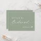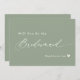 La "Carte de proposition de femme de chambre Sage Green Elegant Script" est une façon sophistiquée et sincère de demander à vos amis chéris de faire partie de votre fête de mariage. Le design se compose d'un élégant arrière - plan vert sauge boho, symbolisant la tranquillité et l'harmonie, complété par une police de caractères élégante qui transmet un sentiment de beauté raffinée. Le message sincère, "Will You Be My Bridesmaid", est présenté avec grâce, ce qui en fait un souvenir mémorable et chéri. C'est plus qu'une simple carte ; c'est une invitation personnelle qui donne le ton pour un voyage magnifique et significatif. La carte comporte de manière visible l'expression "Will You Be My Bridesmaid", souvent présentée dans une police de script fluide qui ajoute une touche d'élégance romantique. L'arrière - plan vert sage offre un cadre serein et sophistiqué, permettant au script blanc de se démarquer. La carte est souvent personnalisée avec le nom de la mariée, ajoutant une touche spéciale. L'intérieur de la carte est généralement laissé en blanc, ce qui permet de recevoir un message manuscrit qui express la connexion personnelle et l'excitation de la mariée. Le design global est conçu pour être visuellement attrayant et cohésif avec un thème de mariage moderne ou élégant. Cette carte de proposition de femme de ménage est parfaite pour quiconque cherche à demander à ses amis de faire partie de leur fête de mariage d'une manière élégante et sincère. L'association d'élégante calligraphie verte et fluide est particulièrement attrayante pour ceux qui apprécient un mélange de sophistication moderne et de beauté intemporelle. La touche personnelle du nom de la mariée et l'espace pour un message manuscrit créent un sentiment d'intimité et de connexion, ce qui le rend adapté à diverses dynamiques de fête de mariage, des amis proches aux membres de la famille. La carte est polyvalente et peut s'adapter à différents styles mariages, du minimaliste à des célébrations plus élaborées. Vous cherchez une façon mémorable et élégante de demander à vos amis d'être vos servantes d'accueil ? Cette "carte de proposition de femme de chambre Sage Green Elegant Script" est un excellent choix. C'est une façon magnifique et unique d'express votre demande sincère et de créer une impression durable. Cette carte de proposition est plus qu'un simple bout de papier ; elle est le reflet de votre appréciation et la promesse d'une célébration joyeuse. Imaginez le plaisir sur le visage de vos amis quand ils reçoivent cette carte personnalisée et distinctive. C’est une façon garantie de faire une bonne première impression et de préparer le terrain pour un voyage mariage vraiment spécial.