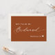 La "Carte de proposition de femme de chambre à script de rouille en terre cuite" est une façon sophistiquée et sincère de demander à vos amis chéris de faire partie de votre fête de mariage. Le design est composé d'un arrière - plan de rouille du désert, symbolisant la tranquillité et l'harmonie, complété par une police de caractères élégante qui transmet un sentiment de beauté raffinée. Le message sincère, "Will You Be My Bridesmaid", est présenté avec grâce, ce qui en fait un souvenir mémorable et chéri. C'est plus qu'une simple carte ; c'est une invitation personnelle qui donne le ton pour un voyage magnifique et significatif. La carte comporte de manière visible l'expression "Will You Be My Bridesmaid", souvent présentée dans une police de script fluide qui ajoute une touche d'élégance romantique. L'arrière - plan de rouille du désert offre un cadre serein et sophistiqué, permettant au script blanc de se démarquer. La carte est souvent personnalisée avec le nom de la mariée, ajoutant une touche spéciale. L'intérieur de la carte est généralement laissé en blanc, ce qui permet de recevoir un message manuscrit qui express la connexion personnelle et l'excitation de la mariée. Le design global est conçu pour être visuellement attrayant et cohésif avec un thème de mariage moderne ou élégant. Cette carte de proposition de femme de ménage est parfaite pour quiconque cherche à demander à ses amis de faire partie de leur fête de mariage d'une manière élégante et sincère. La couleur rouille du désert en terre cuite et l'élégante police de caractères de script sont particulièrement attrayants pour ceux qui apprécient un mélange de sophistication moderne et de beauté intemporelle. La touche personnelle du nom de la mariée et l'espace pour un message manuscrit créent un sentiment d'intimité et de connexion, ce qui le rend adapté à diverses dynamiques de fête de mariage, des amis proches aux membres de la famille. La carte est polyvalente et peut s'adapter à différents styles mariages, du minimaliste à des célébrations plus élaborées. Vous cherchez une façon mémorable et élégante de demander à vos amis d'être vos servantes d'accueil ? Cette "Carte de proposition Bridesmaid Script en terre cuite" est un excellent choix. C'est une façon magnifique et unique d'express votre demande sincère et de créer une impression durable. Cette carte de proposition est plus qu'un simple bout de papier ; elle est le reflet de votre appréciation et la promesse d'une célébration joyeuse. Imaginez le plaisir sur le visage de vos amis quand ils reçoivent cette carte personnalisée et distinctive. C’est une façon garantie de faire une bonne première impression et de préparer le terrain pour un voyage mariage vraiment spécial.