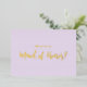 Cette carte de proposition de fête de mariée en feuille d'or moderne comporte un arrière - plan lilas et violet tendance et des champs de texte personnalisables de part et d'autre, idéal pour votre servante d'honneur, servante d'honneur, filles de fleurs, etc.