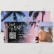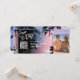 Destination Billet de mariage à la plage Carte d'embarquement Ticket Avion or Enregistrer la date avec cœur et icône d'avion avec une simple carte du monde en ligne art minimaliste et fond de la plage palméeAjoutez votre code QR