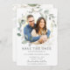 Mettez en valeur votre photo de pré-mariage avec cette carte de rappel photo chic bohème. Avec une belle végétation aquarelle. Personnalisez-la facilement et rapidement avec vos détails, il suffit d'appuyer sur le bouton 'personnaliser' pour réorganiser et formater le style et l'emplacement du texte.