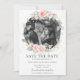 Mettez en valeur votre photo de pré-mariage avec cette carte de rappel photo chic. Caractérisée par une belle couronne florale délicate à l'aquarelle rose et feuillage vert. Personnalisez-la facilement et rapidement avec vos détails, il suffit d'appuyer sur le bouton de personnalisation pour réorganiser et formater le style et l'emplacement du texte.