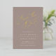 Élégantes cartes de rappel de date de mariage dans des tons terre de cachemire greige avec "save the date" en lettrage script en feuille d'or rose luxe en haut. Personnalisez avec vos détails de mariage en lettrage classique blanc doux.