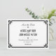 Personnalisez ce modèle de carte de rappel de mariage à cadre rétro Art Déco élégant, entièrement personnalisable et configuré comme un modèle pour une personnalisation facile. La même conception pour le faire-part de mariage, la carte de réponse et la carte d'insertion sont répertoriées ci-dessous.