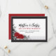 Faites savoir à vos invités votre mariage prochain avec cette carte de rappel de mariage au thème de roses rouges romantiques. Le design présente un cadre noir avec deux roses rouges entrelacées avec du feuillage noir et gris. Le verso présente un cadre noir décoratif sur fond rouge. Achetez les articles de mariage coordonnés pour assortir (vendus séparément). Les articles assortis peuvent être trouvés dans notre collection 'Roses rouges romantiques entrelacées'.