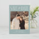 Une carte de rappel de mariage moderne mais simple avec votre photo préférée sur le devant. Ajoutez plus d'informations, ainsi qu'un QR code pour le site web du mariage au verso.