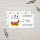 Gardez vos clients sur la bonne voie grâce à notre carte de rappel de rendez-vous pour le dressage de chiens. Ornée d'un dessin humoristique amusant d'un dachshund aux couleurs vives et joyeuses, cette carte est un petit coup de pouce gai pour rappeler aux clients leur prochain rendez-vous de toilettage d'animaux de compagnie. Ses couleurs attirantes et ses graphiques mignons seront appréciés par les propriétaires d'animaux de compagnie qui apprécient un mélange de fantaisie et de praticité.
