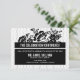 Carte de réception moderne et élégante avec un motif à pois et des accents floraux. Cette carte de réception noire et blanche fait partie d'une suite de mariage. D'autres couleurs et articles assortis sont disponibles.