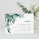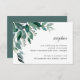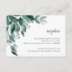 Une élégante carte de réception à motif botanique présente des feuilles et du feuillage d'eucalyptus en aquarelle verte avec une calligraphie encre noire et des lettres majuscules. Personnalisez avec les détails de votre réception de mariage, y compris le calendrier des événements, le lieu et l'adresse. Conçu pour correspondre à notre collection d'invitations Feuillage Abondant.