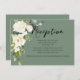 C'est une belle carte de réception de mariage floral simple mais élégante. Une belle cascade de fleurs aquarelles blanches entourées de brindilles de verdure orne le côté gauche de cette carte. Absolument magnifique. Parfait pour un mariage d'automne et d'hiver. Cette couleur et ce design peuvent facilement être mélangés avec des oranges, des burgundy et d'autres couleurs profondes pour compléter votre thème.