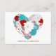 Carte de réception de mariage cœur floral fantaisiste bleu Tiffany et rouge