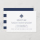 Conçue pour aller avec nos collections de faire-part de mariage nautiques maritimes, cette carte d'invitation de réception de mariage chic côtier dans un bleu marine classique et blanc présente une illustration de boussole en haut avec les détails de votre réception, l'heure, le lieu et l'adresse en dessous.
