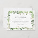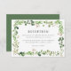 Notre élégante carte de réception de mariage botanique présente un feuillage peint à l'aquarelle dans des tons vibrants de printemps et une bordure verte mousseuse sur la carte. Personnalisez le design en ajoutant les détails de votre réception de mariage. Conçu pour coordonner avec notre collection de mariage Watercolor Greenery.