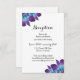 Carte d'insertion de réception de mariage à l'orchidée Dendrobium bleue et turquoise. Conception simple de carte de réception de mariage qui présente une belle variété d'orchidée appelée dendrobium bleu. C'est une couleur sarcelle / turquoise associée au violet et au pourpre royal. Un excellent choix de fleur pour un thème de couleur de mariage paon.