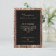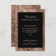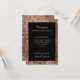Une élégante carte de réception de mariage moderne en or rose avec des paillettes et noire. Cette carte de réception fait partie d'un ensemble complet d'invitations de mariage.