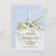 Carte encart de réception de mariage au jardin au bord de la mer. Grande étoile de mer blanche et fleur d'hortensia blanche sur fond bleu clair pour correspondre à l'ensemble. Incluez le lieu et l'heure de la réception et des informations supplémentaires si nécessaire sur de petites cartes 3x5.