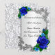 Jolies roses bleues et cadre à motif de feuille d'argent. Cette belle carte de réception est prête à être personnalisée pour votre jour de mariage spécial. Personnalisez la carte en modifiant le texte dans les champs prévus à l'avant et à l'arrière. Vous pouvez changer le style, la taille et la couleur de la police, ainsi que le type et le style de papier.