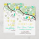 Une illustration adorable de deux oiseaux d'amour perchés sur une branche d'arbre fantaisiste remplie de cœurs et de ficelles de cœur. C'est parfait pour les mariages d'été, de printemps et en plein air.