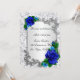 Jolies roses bleues et motif de feuille d'argent encadré. Cette belle carte de réception est prête à être personnalisée pour votre jour de mariage spécial. Personnalisez la carte en modifiant le texte dans les champs prévus au recto et au verso. Vous pouvez changer la police, la taille et la couleur, ainsi que le type et le style de papier.