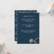Un monogramme moderne est glamour avec des anneaux de mariage en or rose entrelacés et un texte personnalisé, ce qui en fait une nouvelle faire-part de mariage classique avec du texte simplifié en blanc sur bleu marine. Personnalisez tout le texte de cette carte de réception d'invitation et aidez votre invité à un emplacement secondaire ou personnalisez-le pour tout autre besoin que vous pourriez avoir comme des informations d'hôtel ou de site Web.