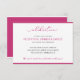 Carte de réception de mariage en calligraphie Cherish (rose chaud et noir) : Cette carte de réception présente une typographie fluide et décontractée pour relayer les détails de votre réception. Le verso est prévu pour un bref ordre des événements de la réception (Cocktails, Dîner servi et Danse). Vous pouvez modifier tout le texte, à l'exception du mot "Célébration" en haut. Le design est présenté en rose chaud, mais vous pouvez le changer en n'importe quelle couleur que vous aimez simplement en changeant la couleur de fond.