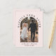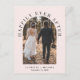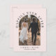 Carton d'invitation élégant de couleur rose clair pour une fugue amoureuse ou un petit mariage. Le recto présente votre photo de mariage dans un cadre en arche et "Heureux pour toujours" dans une typographie élégante. Sous votre photo, ajoutez vos prénoms et la date de votre mariage. Au verso, personnalisez votre message et votre invitation et ajoutez vos noms dans une écriture qui ressemble à une signature.