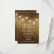 Un magnifique design en bois de grange champêtre avec des lumières scintillantes. Ajoutez simplement vos détails personnalisés au recto de la carte via l'option 'Personnaliser ce modèle'. Vous pouvez également choisir les types de papier pour s'adapter au design. Voir la collection complète de mariage rustique dans la boutique 'Thank You Always'.