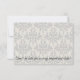 Carte de réception de mariage fantaisiste Chapelier Fou avec damas gris et bordures or et noires. Facilement personnalisable avec les informations de votre événement.