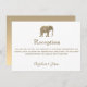 Carte de réception de mariage blanche élégante et minimaliste avec monogramme d'éléphant en feuille d'or - symbole d'amour, de fertilité et de bonne chance.