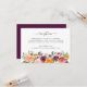 Cette carte de réception à thème d'automne présente une bordure florale d'automne le long du fond de la carte. Les fleurs d'automne comprennent des roses et des mamans dans les tons pêche, bordeaux, prune, rose roux et jaune-orange doré. Correspond à la papeterie mariage dans notre collection "Autumn Elegance".