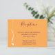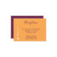 Une carte de réception avec un schéma de couleurs mangue, violet et blanc. Cela fait partie d'un ensemble d'invitations de mariage.