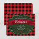 Carte de réception de mariage rustique à carreaux rouges. Articles assortis disponibles.